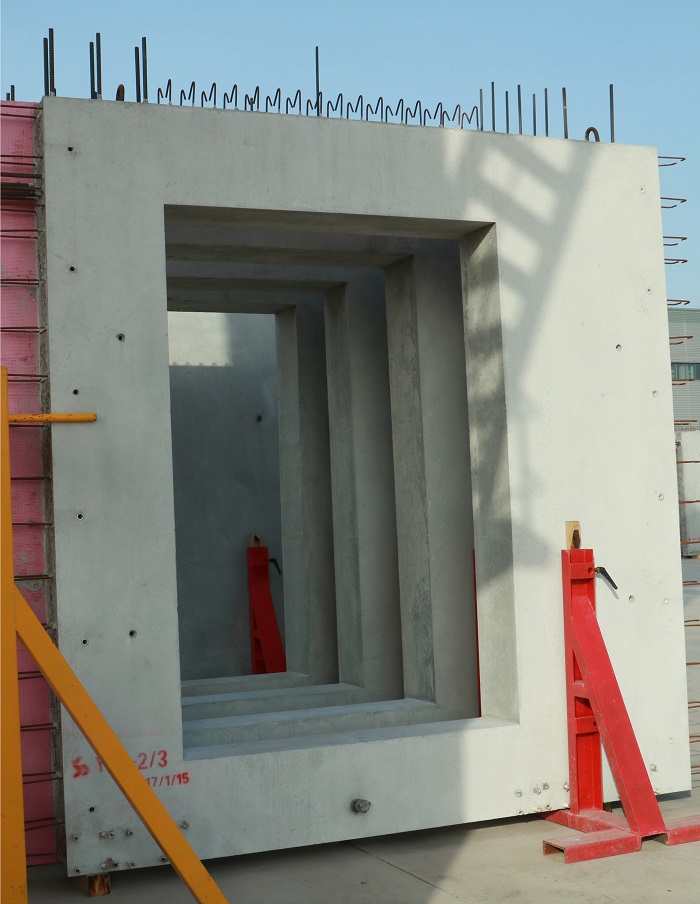 公司設(shè)有PC車間、模具車間、中心實驗室、全封閉式混凝土綠色環(huán)保攪拌站。其中,PC車間擁有4條高效節(jié)能生產(chǎn)線,包括墻板自動化生產(chǎn)線、板類構(gòu)件自動化生產(chǎn)線、固定臺模、全自動化鋼筋加工生產(chǎn)線。